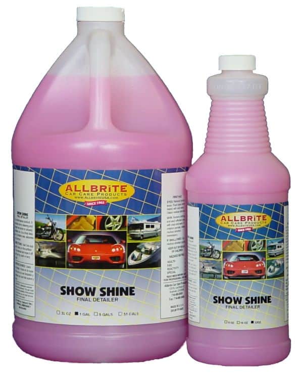 Allbrite Show Shine is a final detailer that adds a radiant shine to previously detailed cars and trucks. Perfect for maintaining showroom and show cars in top condition, Allbrite Show Shine quickly removes dust, fingerprints and smudges and leaves a streak-free shine. Allbrite Show Shine is made in the USA and contains wax, silicones and polymers. Give your show car a lasting “wet look” shine with Allbrite Show Shine!